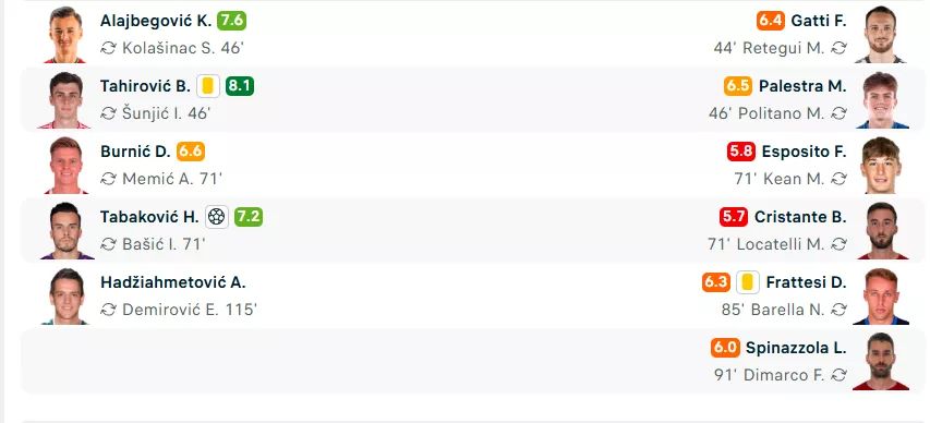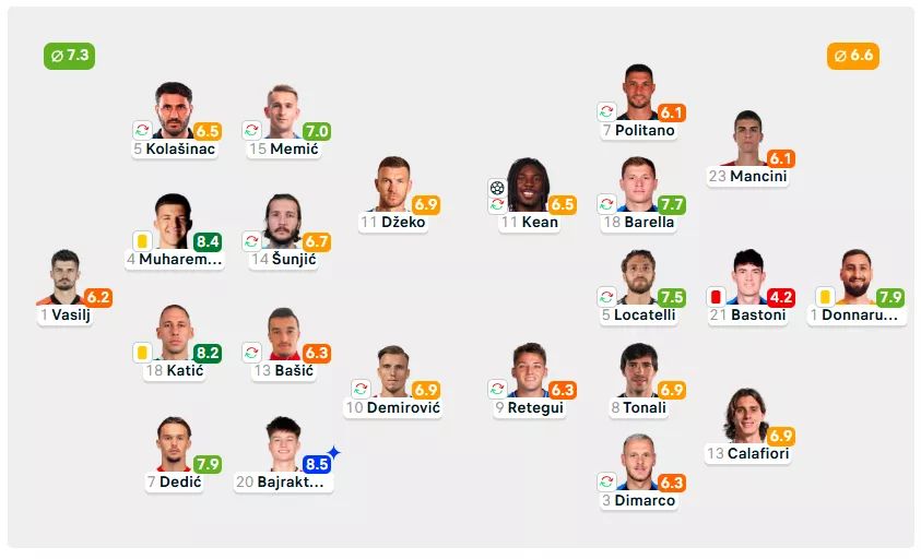 Najbolji igrač utakmice, prema ocjeni relevantnih stranica je Esmir Bajraktarević sa ocjenom 8,5. Slijede ga Muharemović, Katić, Tahirović…