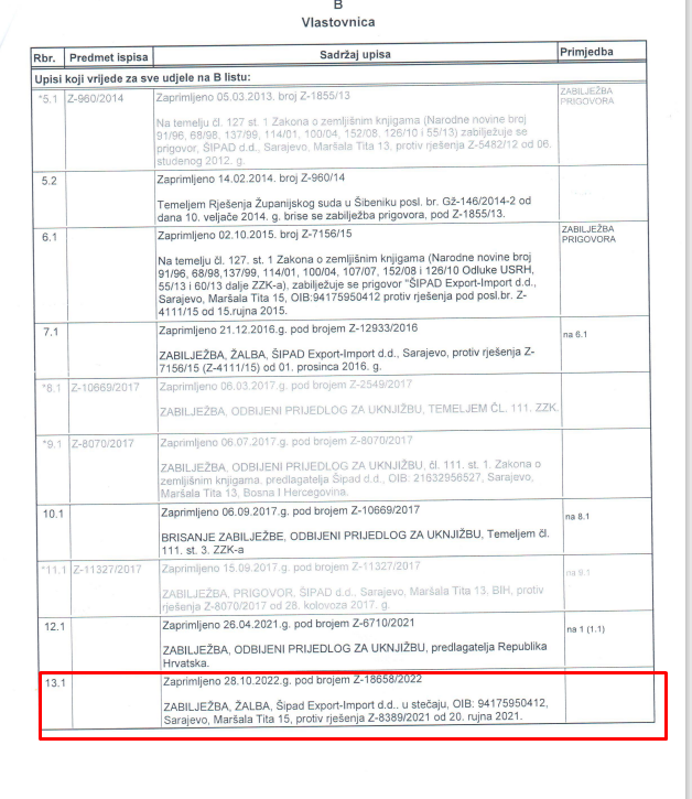 Interesantno je da se i Republika Hrvatska 26. aprila 2021. godine pokušala uknjižiti kao vlasnik ove imovine, a što je Sud također odbio! Jednostavno, Hrvatska kao gumicom briše i razvlašćuje vlasnike. Upravo je to slučaj i sa “Lukom Drvo” Šibenik, čija se imovina procjenjuje na više od 100 miliona eura.