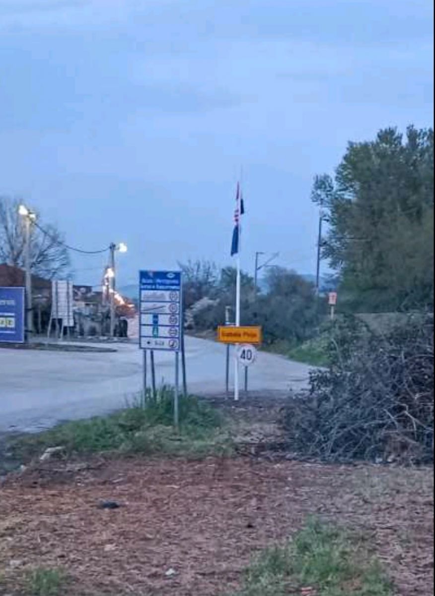 Tako je zastava takozvane HRHB postavljena na području Graničnog prijelaza Gabela, između Bosne i Hercegovine i Republike Hrvatske.