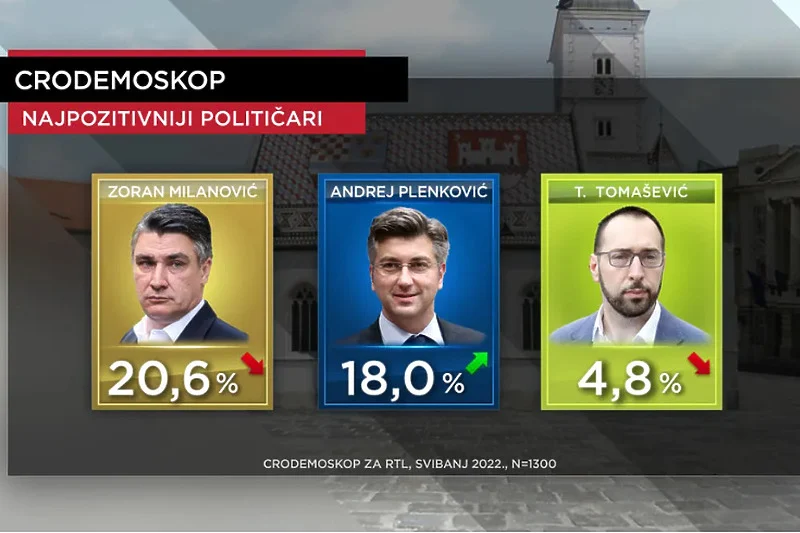 Istraživanje koje je objavio RTL pokazuje da je došlo do pada popularnosti predsjednika Zorana Milanovića kod građana Hrvatske, dok se politički rejting premijera Andreja Plenkovića popravio.