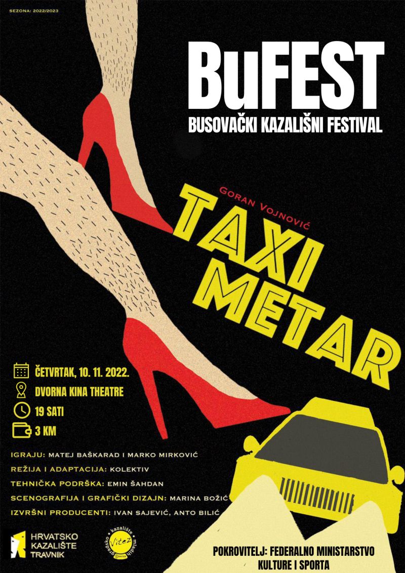 4. busovački kazališni festival BuFEST započinje u četvrtak, 10. 11. 2022. godine, s početkom u 19 sati, predstavom “Taximetar”. Riječ je o koprodukciji Gradskog kazališta mladih Vitez i Hrvatskog kazališta Travnik. Autor predstave je Goran Vojnović.