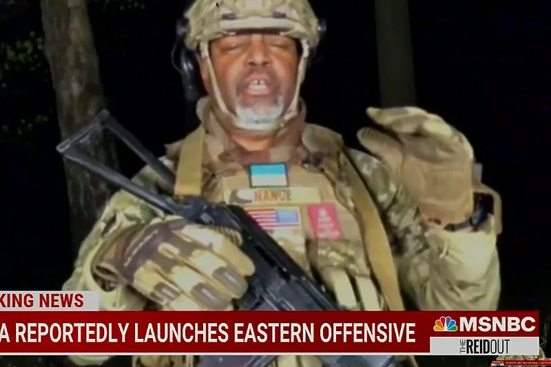 Bivši oficir američke pomorske obavještajne službe, star 61 godinu, pojavio se u programu MSNBC-a noseći punu borbenu opremu i oružje.