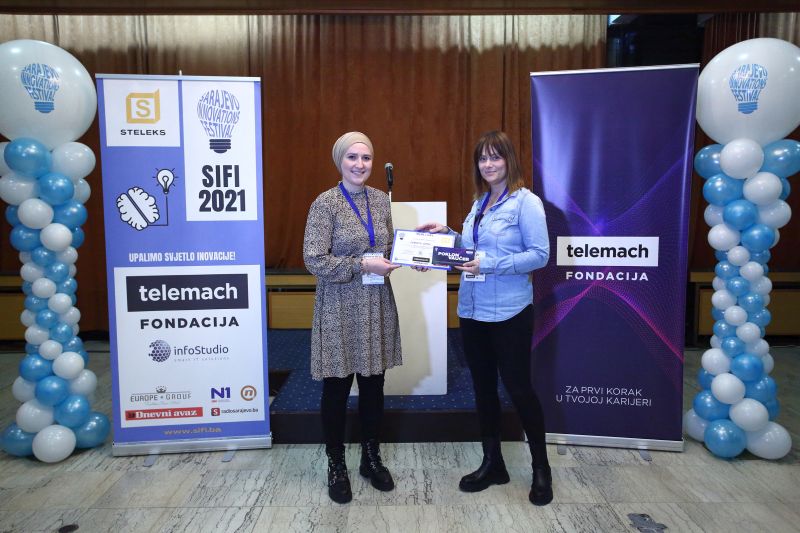 Prvo mjesto prema ocjenama stručnog žirija ovogodišnjeg “Sarajevo Innovations Festival 2021.” pripalo je Emini Okanović za rad “Razvoj višekanalnog Sistema za aktivizaciju signala sa elektroničke kože”, drugo mjesto pripalo je Adisu Panjeviću za rad “Kompenzacija uticaja ambijentalnih uslova na mjerni rezultat elektrohemijskog NO2 senzora” a za trećeplasirane učesnike ovog događaja proglašene su Anja Plakalović i Esma Herenda koje su se žiriju predstavile sa radom “Primjena modela mašinskog učenja za detekciju srčanih aritmija”.